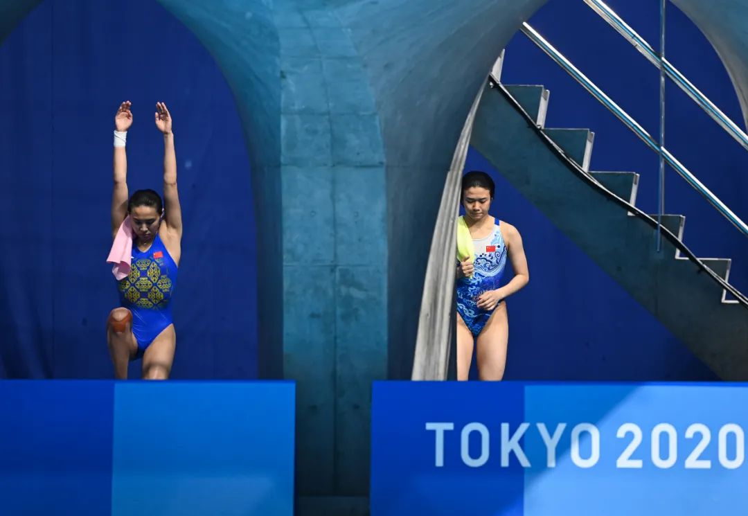 施廷懋和王涵 : 中国梦之队公布奥运参赛阵容!施廷懋领衔任茜落选,曹缘跳台兼项 - Shi tingmao(施廷懋)/ wang han(王涵)of china compete in the women's 3m synchro springboard final during day one of the fina/nvc diving world series 2019 beijing station at th.